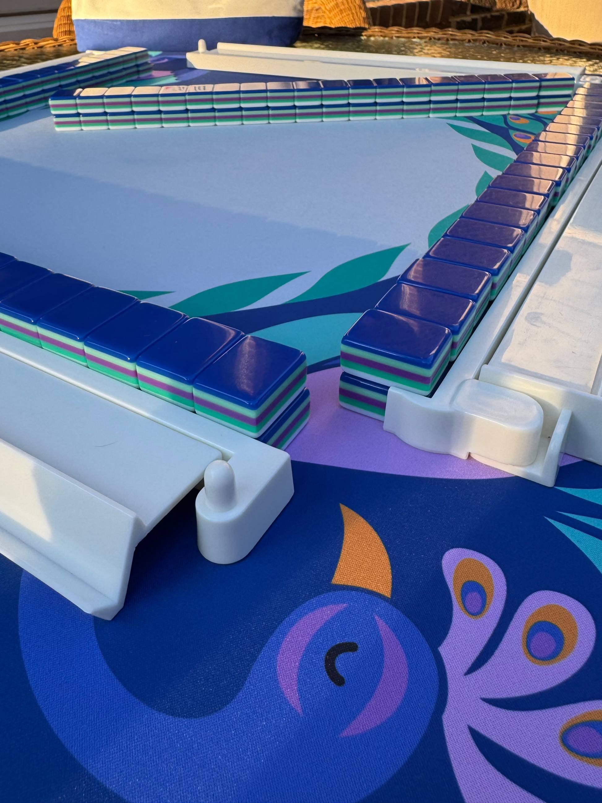 Strut your stuff with this lovely, peacock-inspired mahjong mat!
