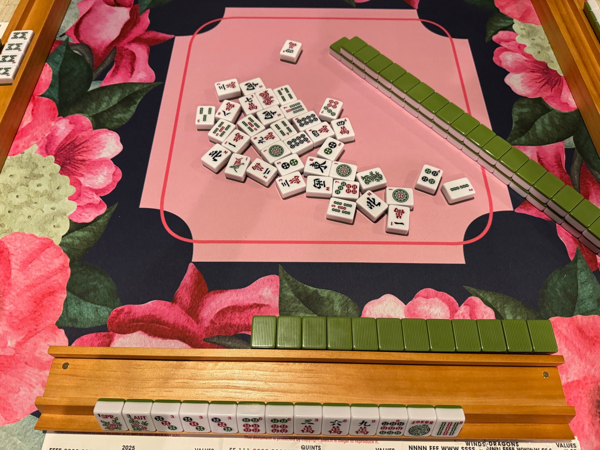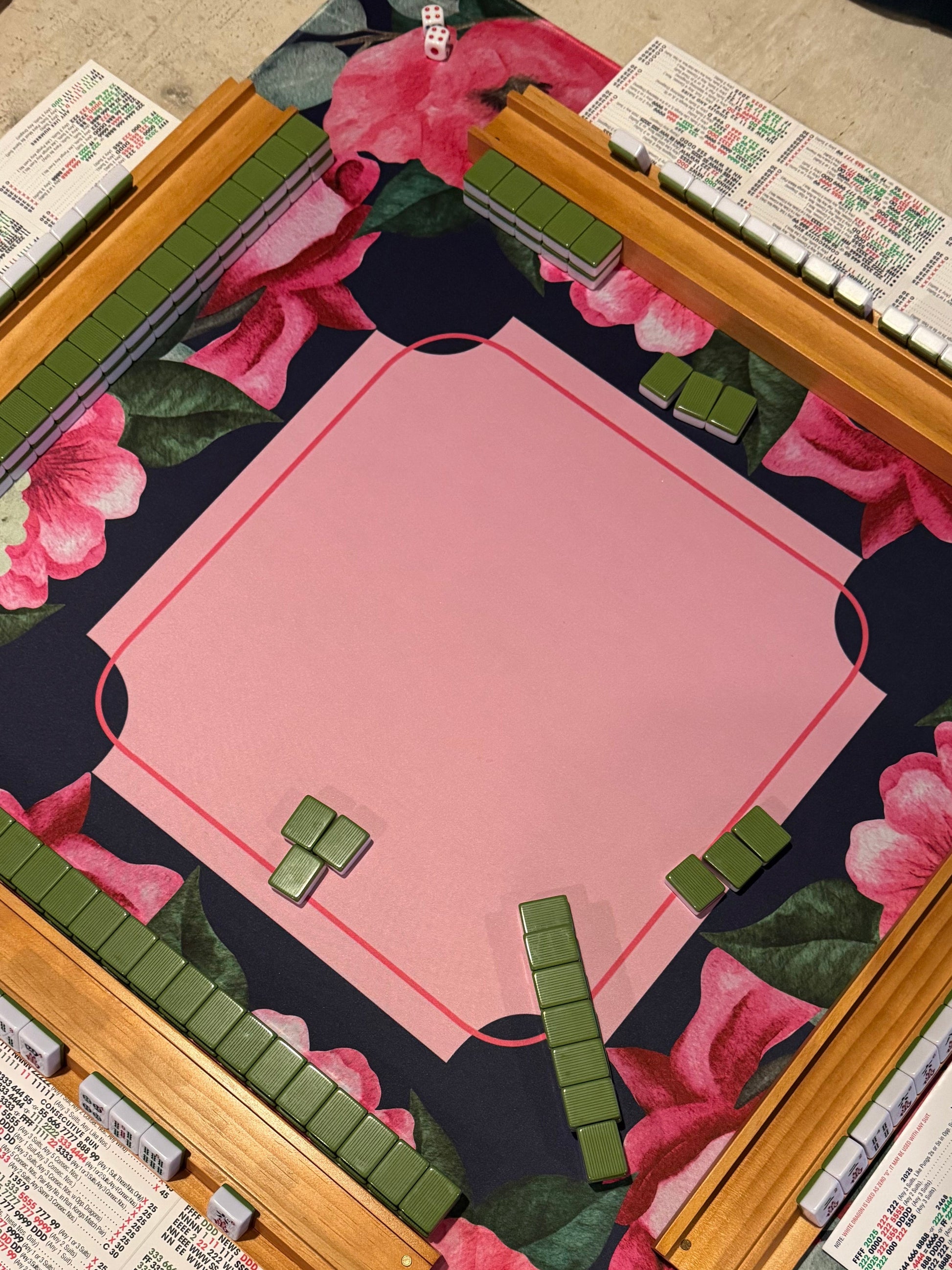 Spruce up your table with The Garden Party Mahjong Mat in navy, greens and pinks.